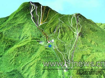 省測繪局為哈爾濱市申辦2009年世界大學生冬季運動會制作的亞布力滑雪場三維景觀圖。