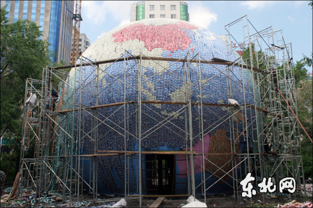 東北網5月27日電(記者孫曉銳)日前,一個由10餘萬個易拉罐組裝而成的環保『地球儀』目前已完成主體搭建工作,6月初將在哈爾濱兆麟公園與市民見面。
