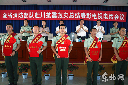 東北網7月31日訊 (記者 印蕾 ) 軍歌嘹亮,獎章閃耀。在『八一』建軍節即將到來之際,31日,全省消防部隊赴川抗震救災總結表彰電視電話會議隆重舉行。副省長孫永波出席會議並講話。