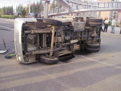 東北網6月23日訊 22日17時50分,在哈市松北志華學院路路口天橋下,一輛由西向東行駛的轎車與一小型貨車相撞,小貨車被撞出二十多米後翻倒在地。無人員傷亡。目前事故正在進一步調查中。