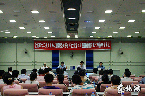 | 省政府召開全省五七工家屬工養老保障暨關閉破產國有企業退休人員醫療保障電視電話會議。 東北網記者 印蕾攝 |