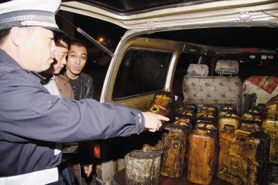 哈爾濱一微型面包車載運250公斤柴油被交警扣留(圖)