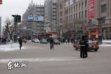 15日中午,實行單向交通管制的哈爾濱市果戈裡大街車流順暢。東北網記者高雷 攝
