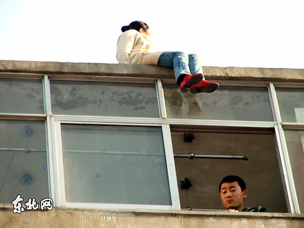 到達現場後,救援人員看到,該名女子坐在樓頂一陽臺上方邊緣處,兩腿懸空,情緒激動,不時做出各種欲跳下的動作,隨時有墜樓的可能。警方及其親屬正在樓頂勸說其放棄輕生念頭。