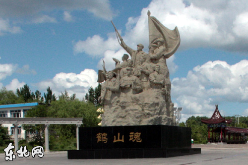 鶴山農場標志雕塑鶴山魂。 東北網記者 邵奇 攝