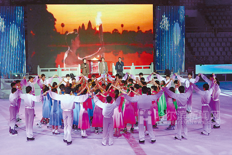 活動流程大致為:大型歌舞表演《美麗的風采》;舞蹈《火炬》;火種入場;火炬交接;火炬傳遞;點燃火炬盆;歷屆冠軍代表展示;雙人滑表演;大型歌舞《讓友誼地久天長》。