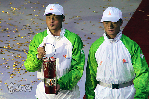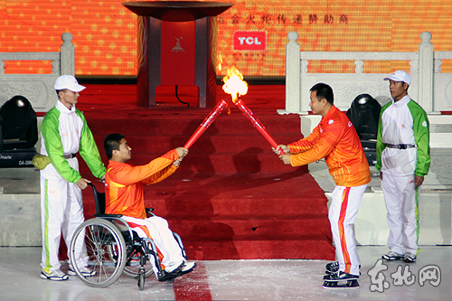 | 火炬交接瞬間。東北網記者 李楠攝 |