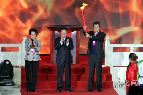 | 亞運會火炬交接儀式現場。東北網記者 楊尚峰攝 |