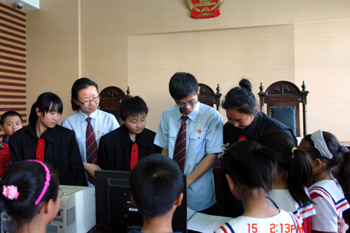 東北網7月8日訊 (劉水 記者 岳雲雪)7月8日,哈爾濱江畔小學的學生們來到法庭,在松北法院法官的指導下,模擬開庭程序,當上了『大法官』。坐在審判席上的『小法官』們親身體會到了法律的神聖與莊嚴。
