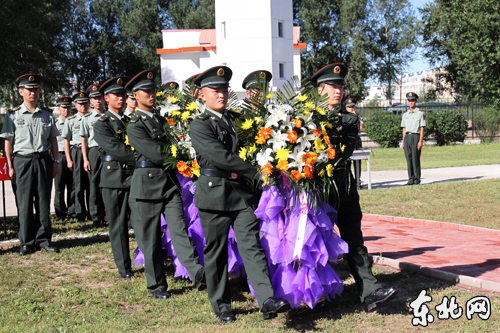 邰忠利生前所在連隊官兵在紀念碑前向英雄敬獻了花籃。東北網記者 岳雲雪攝