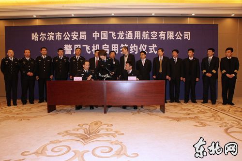 東北網2月28日訊 (趙曉敏 金鋼 記者岳雲雪)2月28日上午,哈爾濱市公安局與中國飛龍通用航空有限公司警用飛機啟用簽約儀式在友誼會堂舉行。這標志著哈市警用航空實現了零的突破。