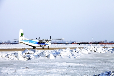 資料片:飛機攜帶“焰彈”准備起飛進行增雪作業
