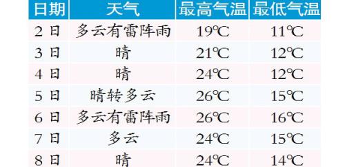 東北網9月2日訊 秋意漸濃,涼風習習。上周我市受冷空氣影響,氣溫下降明顯,周最低氣溫平均值為12.3℃,最高氣溫維持在21℃左右。本周我市天氣晴多雨少。周一有雷陣雨,氣溫稍低;周二到周四隨著冷空氣的東移,天氣基本上以晴為主,氣溫逐步回昇,周四、周五白天最高氣溫昇至26℃;周五,一股弱冷空氣劃過,天氣多雲有雷陣雨;周六、周日天氣轉晴,比較適宜外出休閑。