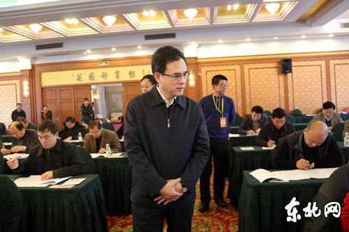 黃建盛來到測試現場巡視答題情況。東北網記者 李博 攝