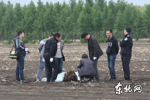 工作人員對不明物展開調查。東北網記者 那鵬翔 攝