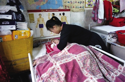 4日清晨6點,哈市12歲的小智慧摸黑起床,聽著母親均勻的呼吸聲,輕輕地嘆了一口氣。4年前,她的母親突發腦出血變成了植物人,讓家庭一下子陷入了窘境。由於父親忙於出攤養家,姐姐又在讀大學,懂事的小智慧4年多來堅持天天給母親擦背、摳痰、按摩,希望用聲聲呼喚,叫醒“沈睡”的媽媽。