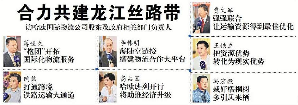 “哈歐國際物流公司的成立及哈歐班列即將開行是我省打造‘中蒙俄經濟走廊’龍江陸海絲綢之路經濟帶的具體實踐,這說明龍江絲路帶建設邁出了非常堅實非常關鍵的一步。哈爾濱作為龍江絲路帶上的重要節點城市,既是最大的受益者,也是積極的建設者。”哈爾濱市發改委主任王鐵立說,哈爾濱市要抓住這一歷史性機遇,圍繞龍江陸海絲綢之路經濟帶建設規劃,把事情一件一件地做實、做好。為此,哈市將圍繞哈歐國際物流公司和哈歐班列項目,在基礎設施建設、貨源組織以及配套服務方面加大推進力度,以確保哈歐班列盡快進入常態化運營。【詳細】