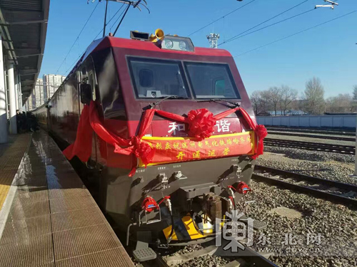 東北網11月1日訊(記者 孫英鑫)11月1日10時02分,隨著齊齊哈爾站站臺上,一身『紅妝』的和諧D3D型606號電力機車一聲長鳴,牽引著K7108次旅客列車駛向哈爾濱站,標志著濱洲電氣化鐵路哈爾濱至齊齊哈爾段正式開通運營。至此,擁有百年歷史的濱洲鐵路進入電氣化時代,告別了燃油的歷史。