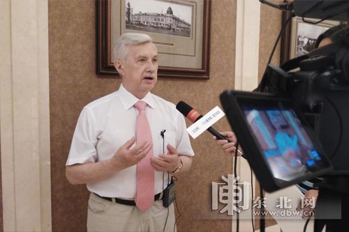俄社科院士、俄科學院西伯利亞分院經濟研究所副所長維亞采斯拉夫·謝利維爾斯托夫接受記者采訪。東北網記者 王巍 攝