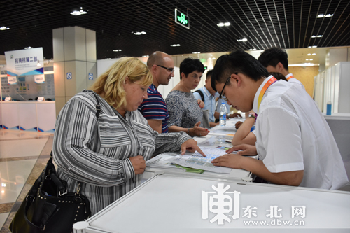 東北網6月17日訊(姜慶華 記者 莊園) 第四屆中俄博覽會和第二十八屆哈爾濱國際經濟貿易洽談會(簡稱哈洽會)於6月15日至19日舉行,參展注冊專業客商達13000餘家,吸引前來的中外賓客更是絡繹不絕。如何周詳細致地服務好中外客商,做好展會的會務保障成為了展示龍江形象的窗口之一。各交通路口、展廳、各個服務站點,都可見一個個忙碌的身影,他們進行著會務保障、諮詢引導、語言翻譯、信息服務等一系列工作,他們就是中俄博覽會的青年志願者們。