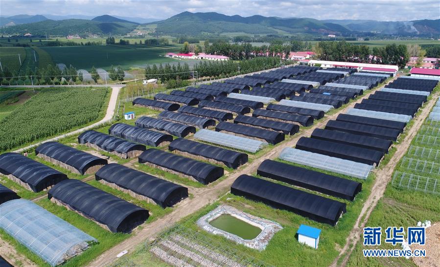 這是8月14日航拍的黑龍江省海林市海林鎮的猴頭菇大棚。