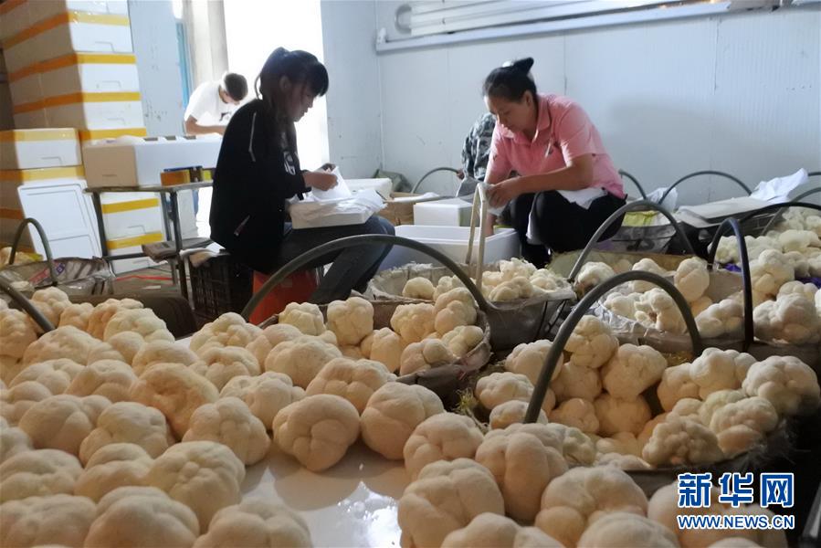 8月14日,在黑龍江省海林市海林鎮,工作人員在為即將發往外地的鮮猴頭菇做冷藏包裝。