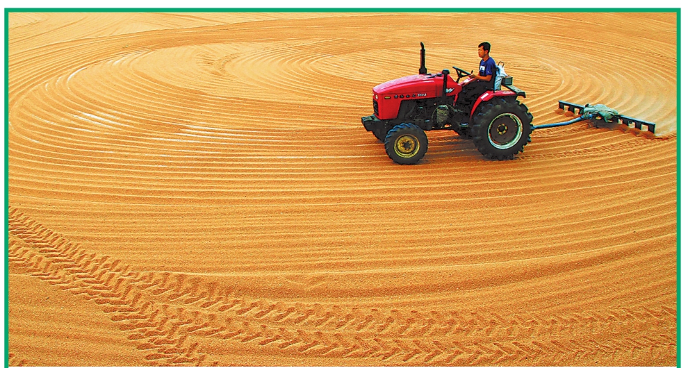 黑龍江日報8月23日訊 在墾區建設農場第五管理區曬場上,職工正在駕駛著拖拉機翻曬小麥。今年,該農場瞄准市場走勢,進一步調整優化農業種植結構,在『互聯網+精准農業』新模式下擴大了綠色有機春小麥的種植面積,不久前喜獲豐收。