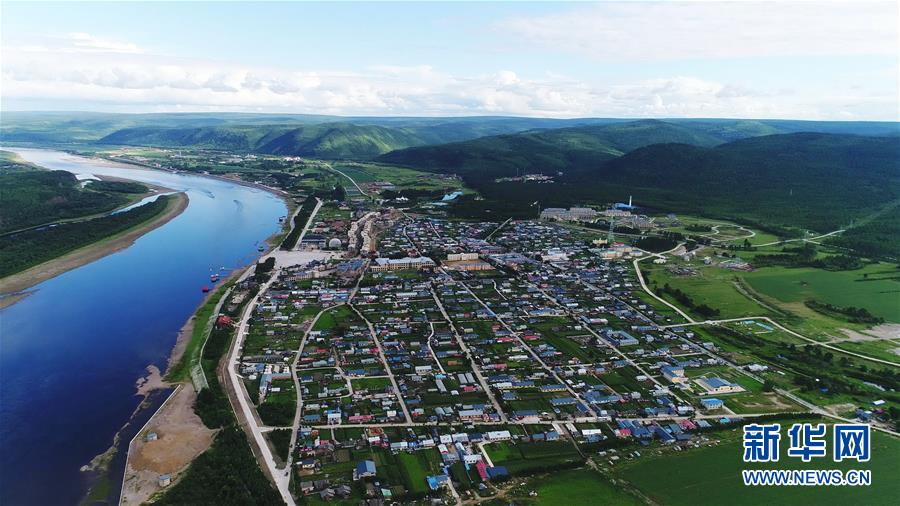 這是航拍黑龍江畔的北極村全貌(8月1日攝)。