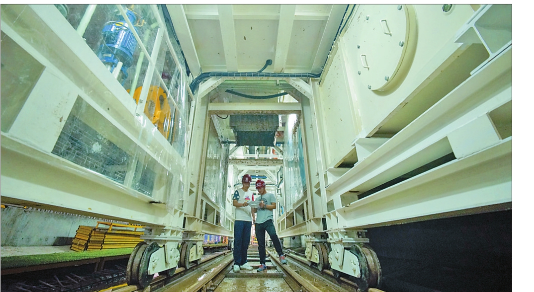 近日,記者來到地鐵2號線冰雪大世界站至世貿大道站區間施工現場,工作人員介紹,目前,盾構機已在地下晝夜施工全速掘進。『由於冰雪大世界至世茂大道區間是穿江線路,需要采取「泥水盾構」方式施工建設。地下泥土、細沙粘性極大,為施工帶來很大難度。』冰雪大世界站項目部經理喬國強告訴記者。地鐵2號線一期冰雪大世界至世茂大道盾構區間總長度為2.99公裡,目前盾構機每天可以掘進12米左右,預計明年10月末,冰雪大世界站至世茂大道站將實現洞通。