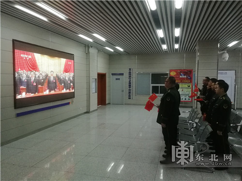 東北網10月18日訊(記者 包海多)10月18日,舉世矚目的中國共產黨第十九次全國代表大會在北京人民大會堂開幕。東寧邊檢站組織官兵通過多種形式同步收聽收看開幕盛況。