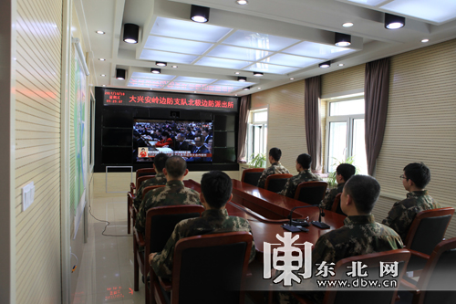 北極邊防派出所組織官兵集中收看黨的十九大開幕盛況。
