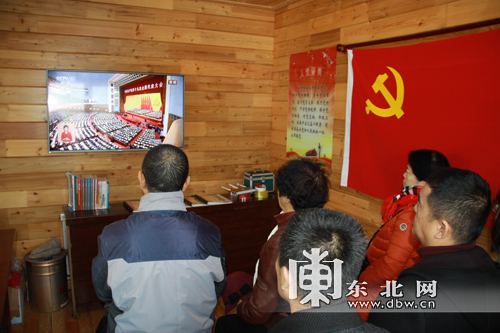游客在北極村『流動黨員驛站』觀看黨的十九大開幕盛況。