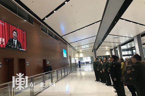 在綏芬河市內,邊防檢查站機關及執勤科備勤官兵集中收看了黨的十九大開幕會盛況,官兵們全神貫注,認真聆聽,不時用筆記錄。官兵們一致表示絕對聽黨指揮,立足崗位,忠誠履職、苦練精兵,奮力作為,紮紮實實做好本職工作,創造優良的工作業績。