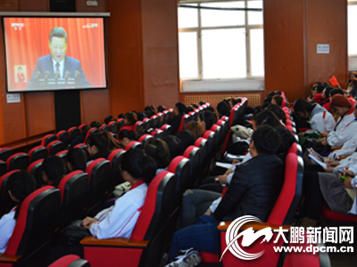 牡丹江市部分高校學生集體收看十九大開幕式盛況。