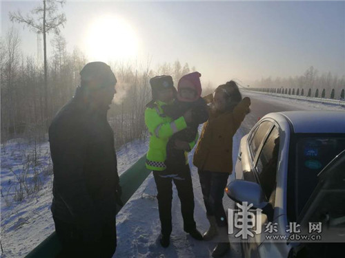 東北網1月24日訊(劉雪晴 記者 包海多 編輯 李玥)23日清晨,漠河縣正被零下47攝氏度的極寒天氣包圍。因車輛突發故障,駕駛員司先生在冰雪中滯留了20多分鍾,幾乎凍僵,多虧漠河縣公安局交巡警大隊民警及時幫助重新啟動了車輛。