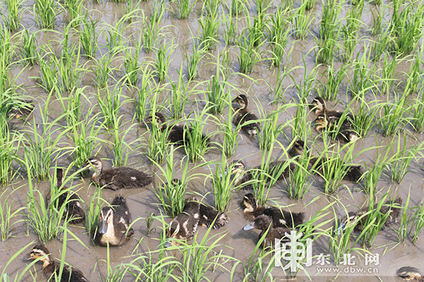據趙德山介紹,為了達到『星火大米』品牌的使用標准,今年玉成現代農機專業合作社的水稻采取了魚鴨蟹稻共育的種植模式。趙德山指著窗前的一片稻田說,『這1000畝稻田裡,我們今年投放了60萬尾草魚、70萬尾花鰍、還有幾千只鴨子。與往年不同的是,今年的種植過程有了農業局專業技術人員的助力,指導我們如何科學運用這種立體種養技術;如何利用菌群避免使用農藥且避免病蟲害。憑借「星火大米」的品牌,我們都嘗到了甜頭!』