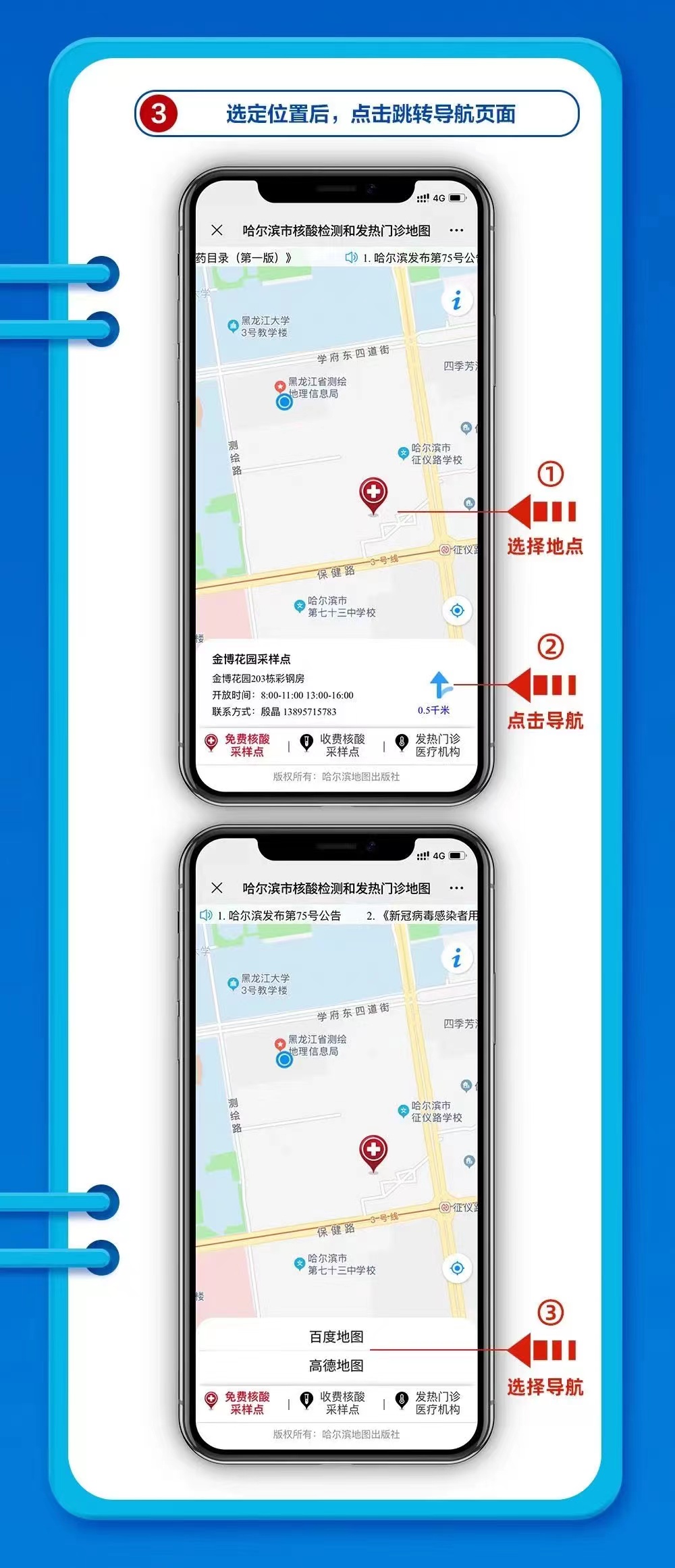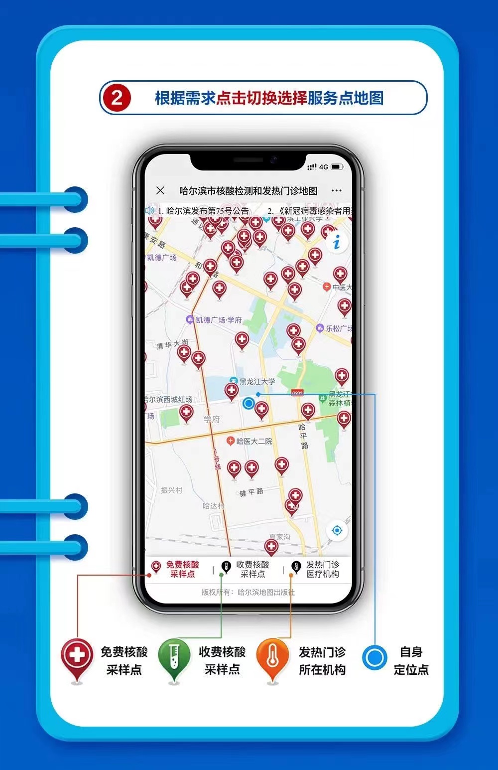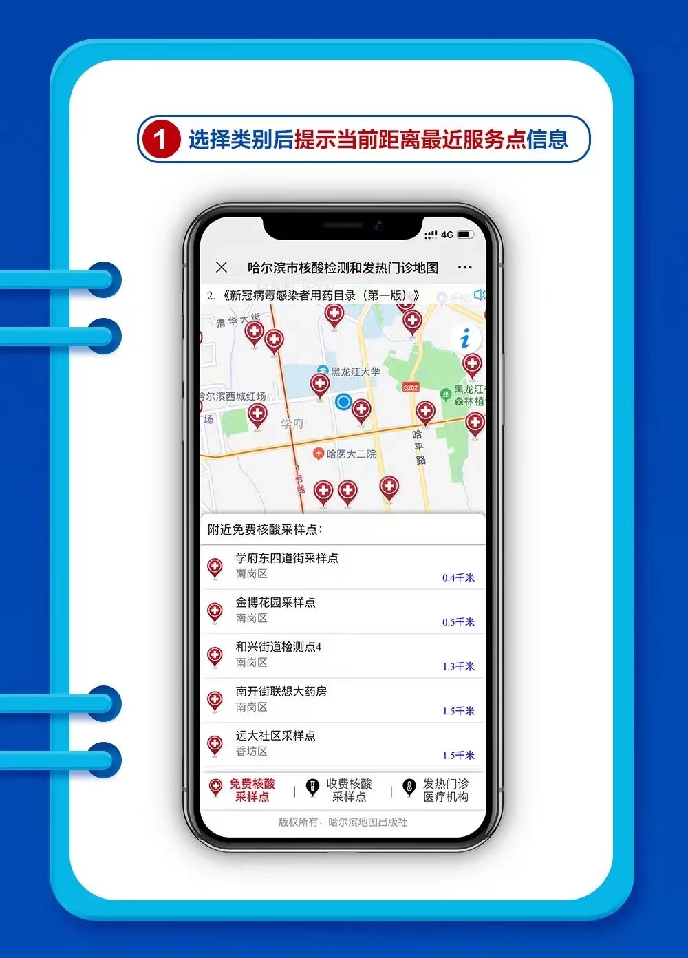 東北網12月16日訊(記者 楊帆)日前,黑龍江測繪地理信息局開發的『新冠病毒核酸檢測采樣點和發熱門診』地圖查詢功能上線,方便百姓搜索距離最近的采樣點和發熱門診地點,位置一目了然,距離一看便知,一鍵導航更加便民。